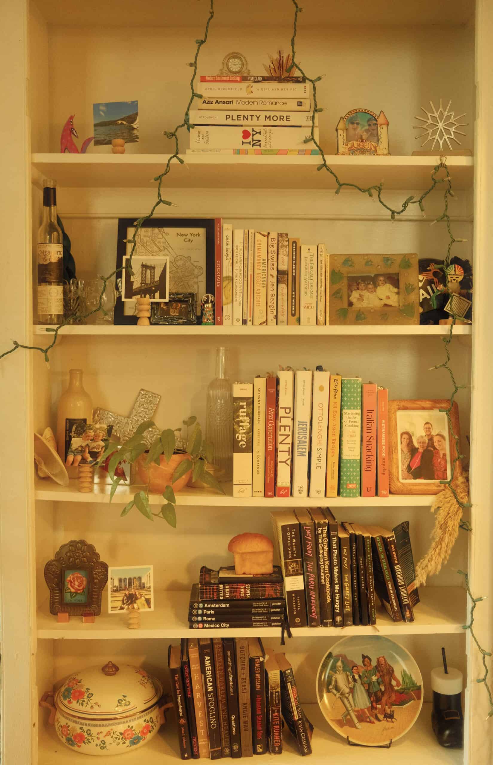 I live in a 100 year old building and I have these gorgeous built-ins in my living room where most of my cookbooks live. A handful of them are relegated to decoration, but I do have a shelf that hosts some of my more used cookbooks, so they’re easier to access. I keep my most used books on a shelf in my kitchen and periodically swap them out to try and force myself to use them more. Yotam Ottolenghi’s Simple and Allison Roman’s Dining In and Nothing Fancy are probably the books I’ve used the most, and Andy Baraghani’s more recent The Cook You Want To Be has a lot of bangers.